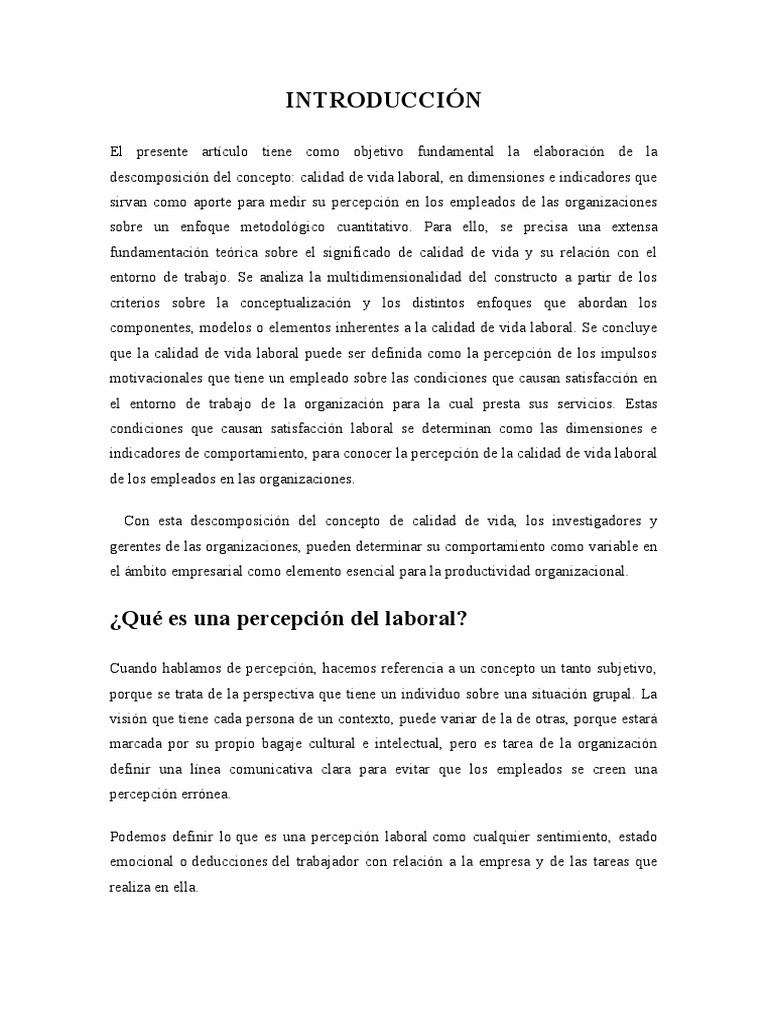 Un factor importante para contribuir en lo que es una percepción de laboral es la