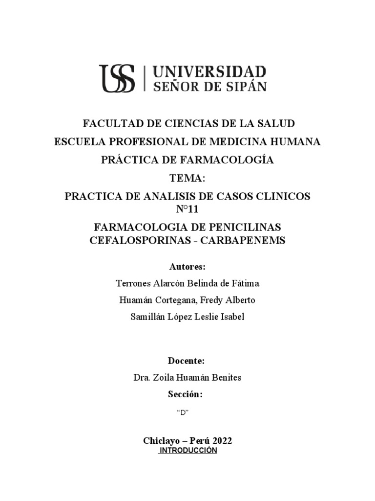 En el presente informe detallaremos la farmacología de las penicilinas, cefalosporinas y