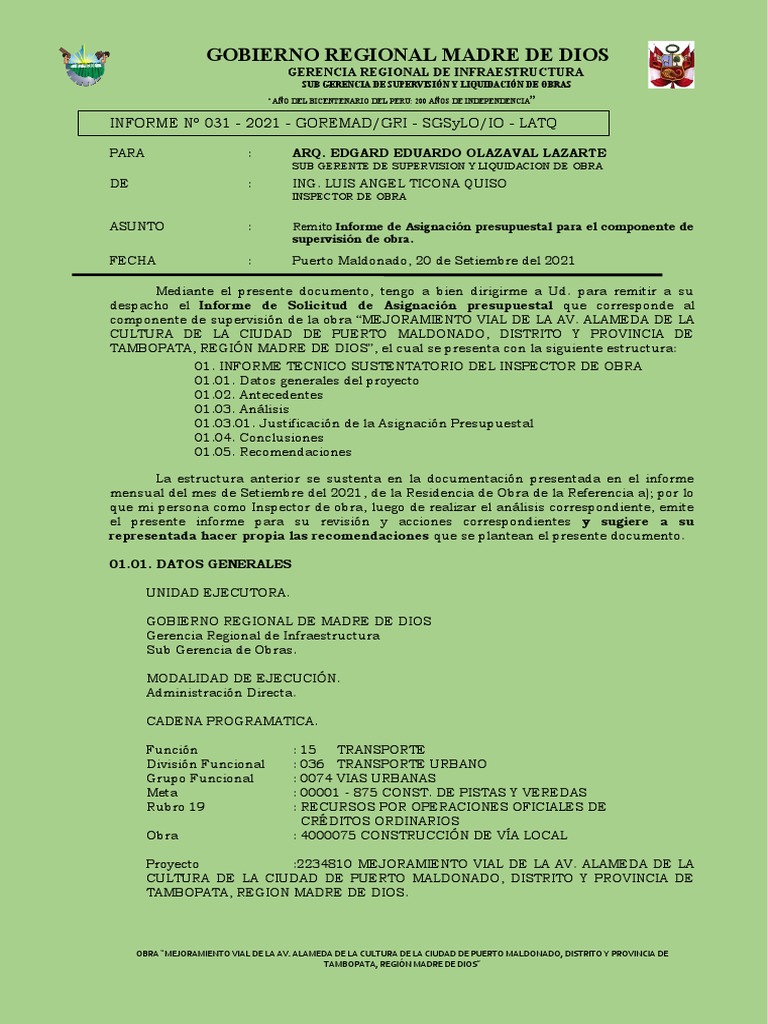 INFORME Nº 031 - 2021 - GOREMAD/GRI - SGSyLO/IO - LATQ