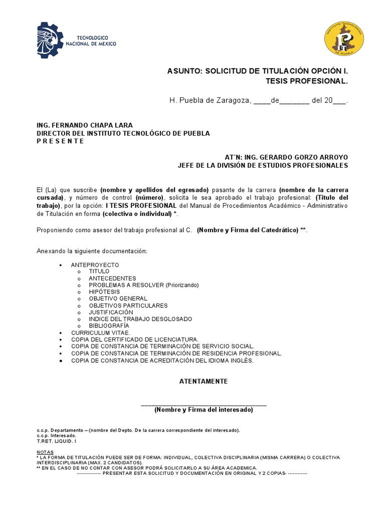 cursada), y número de control (número), solicita le sea aprobado el trabajo profesional: (Titulo del