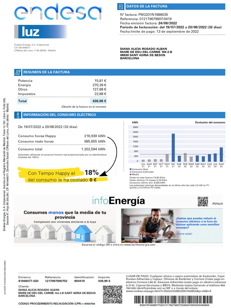 A partir del 31 de marzo de 2022 los precios de su tarifa con Endesa se han actualizado El 15 de junio de 2022 entró en aplicación el "tope del gas" regulado en el