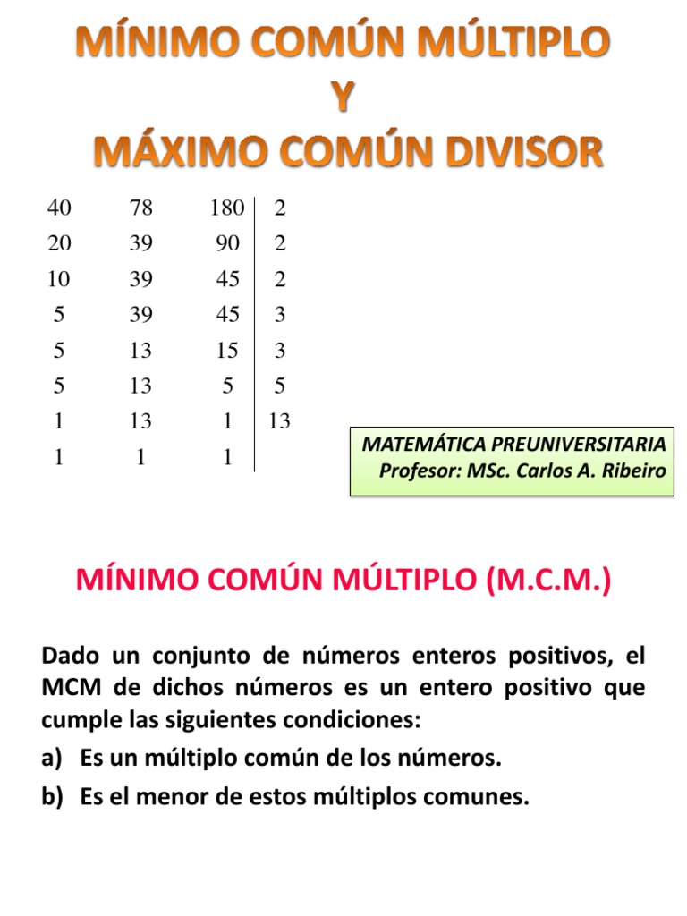 Hallar el MCM de 40, 78 y 180