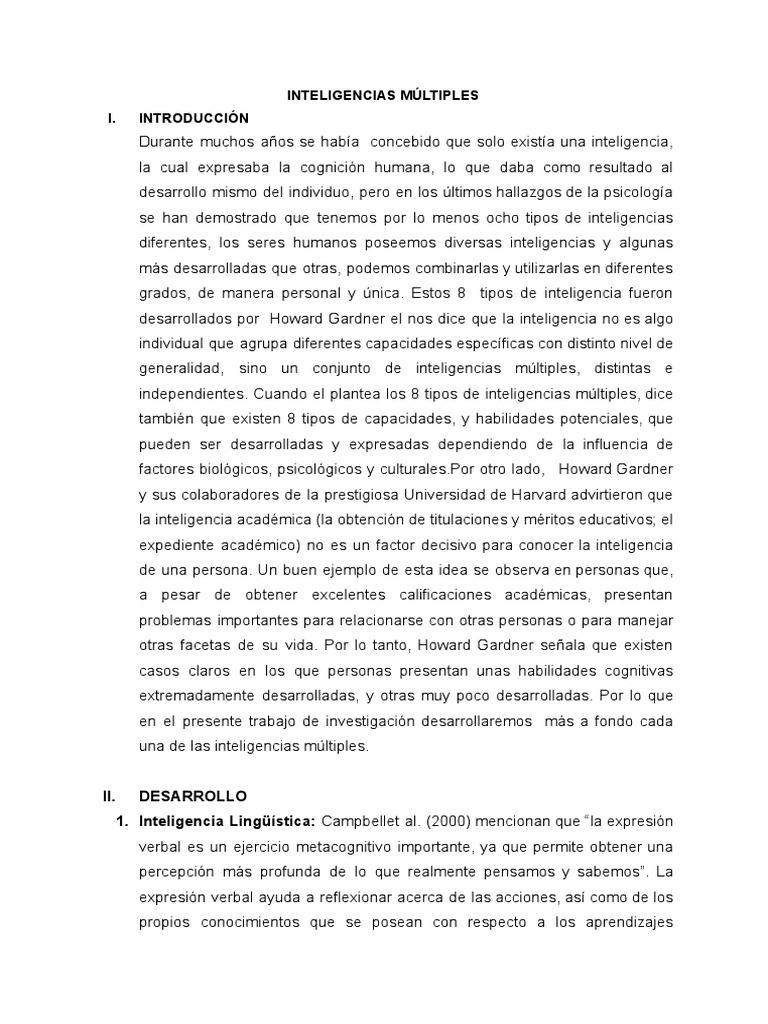 desarrollados por Howard Gardner el nos dice que la inteligencia no es algo