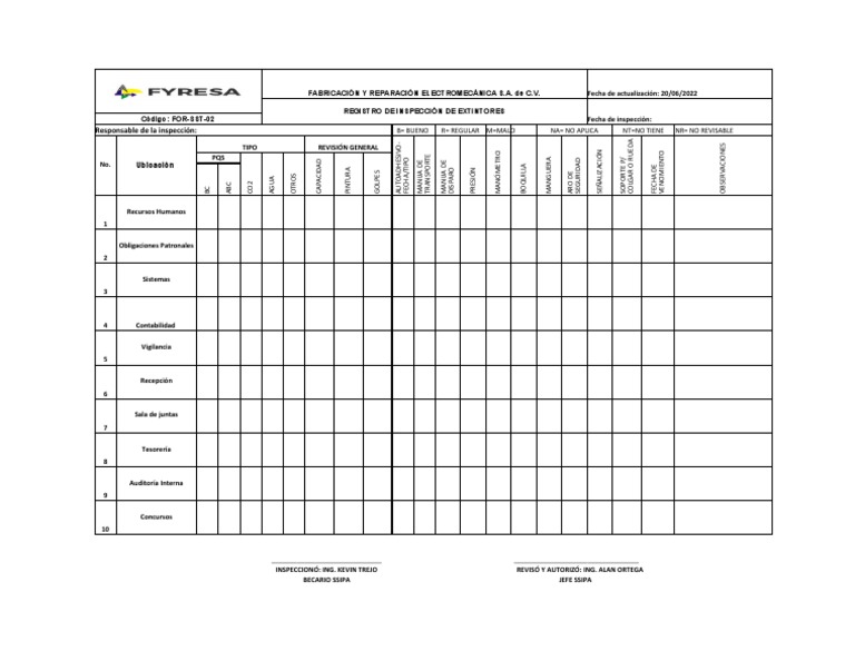 REGISTRO DE INSPECCIÓN DE EXTINTORES