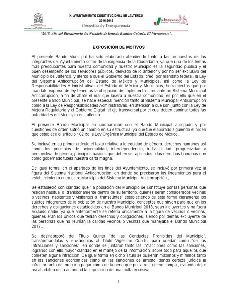 Municipal 2018 de Jaltenco, Estado de México, y en ejercicio de las atribuciones que me