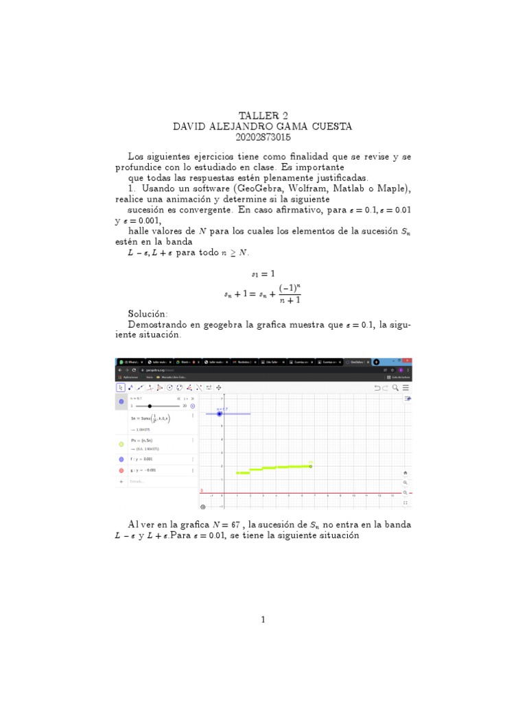 sucesión es convergente. En caso a…rmativo, para " = 0:1; " = 0:01