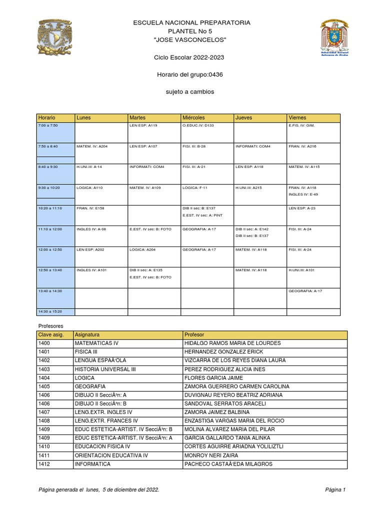 Página generada el lunes, 5 de diciembre del 2022. Página 1