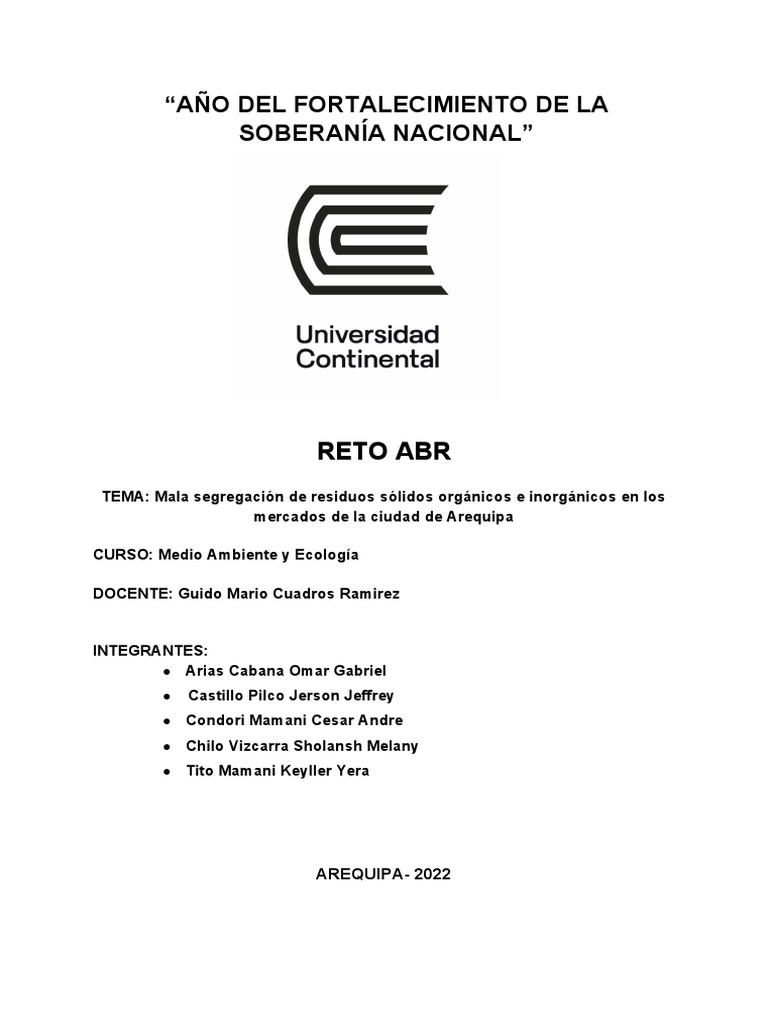 TEMA: Mala segregación de residuos sólidos orgánicos e inorgánicos en los