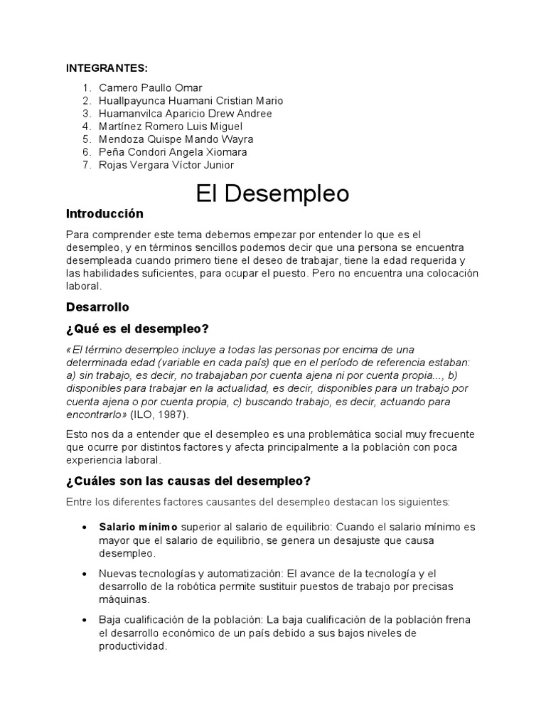 existencia del desempleo y mientras se mantenga este problema traerá una serie de
