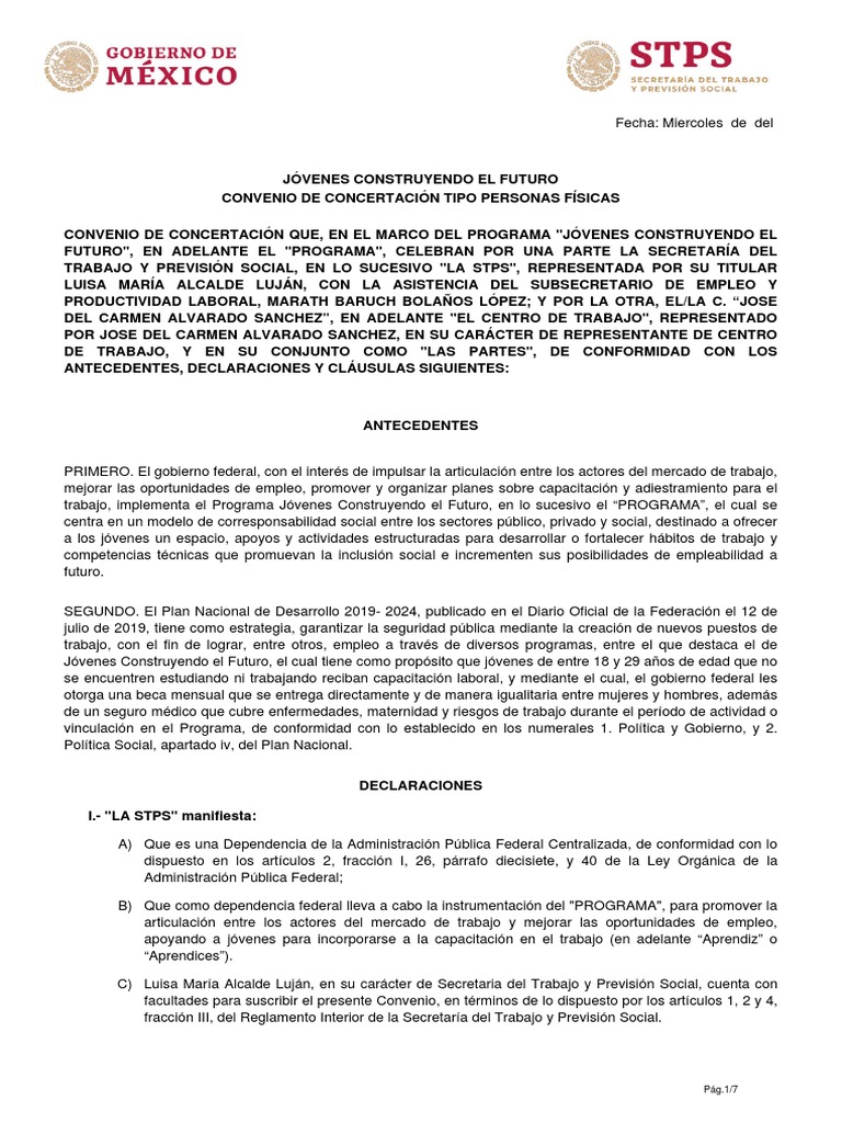 CONVENIO DE CONCERTACIÓN TIPO PERSONAS FÍSICAS