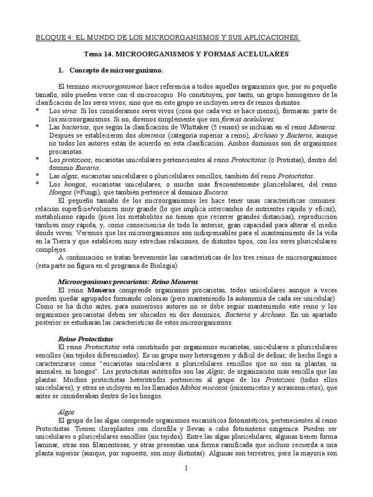 Tema 14. MICROORGANISMOS Y FORMAS ACELULARES