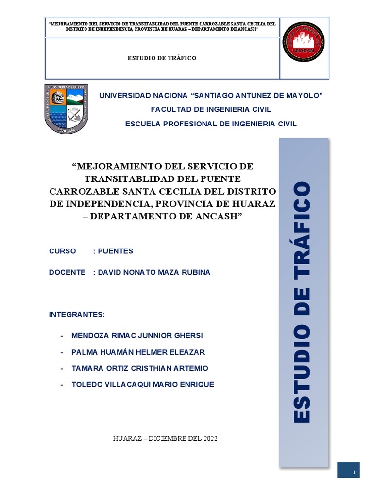 Proyecto: “MEJORAMIENTO DEL SERVICIO DE TRANSITABILIDAD DEL PUENTE