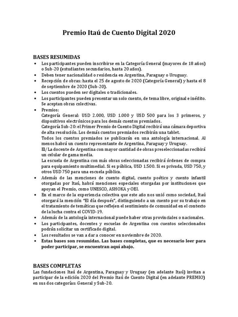 participar de la edición 2020 del Premio Itaú de Cuento Digital (en adelante PREMIO)