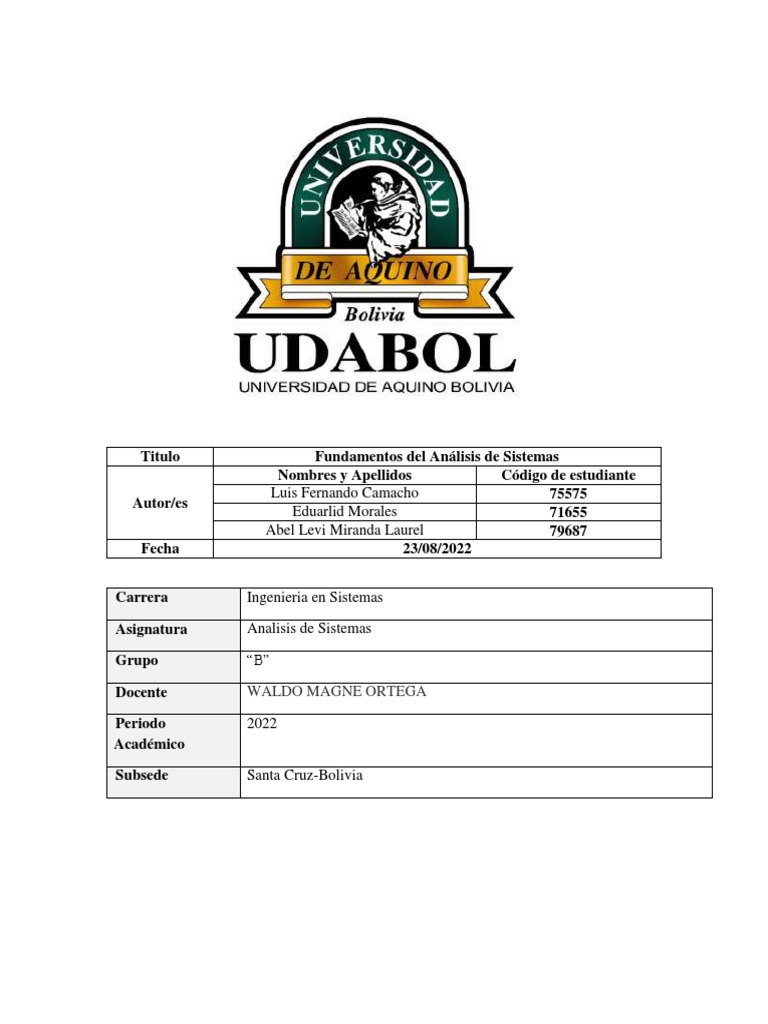FUNDAMENTOS DEL ANÁLISIS DE SISTEMAS
