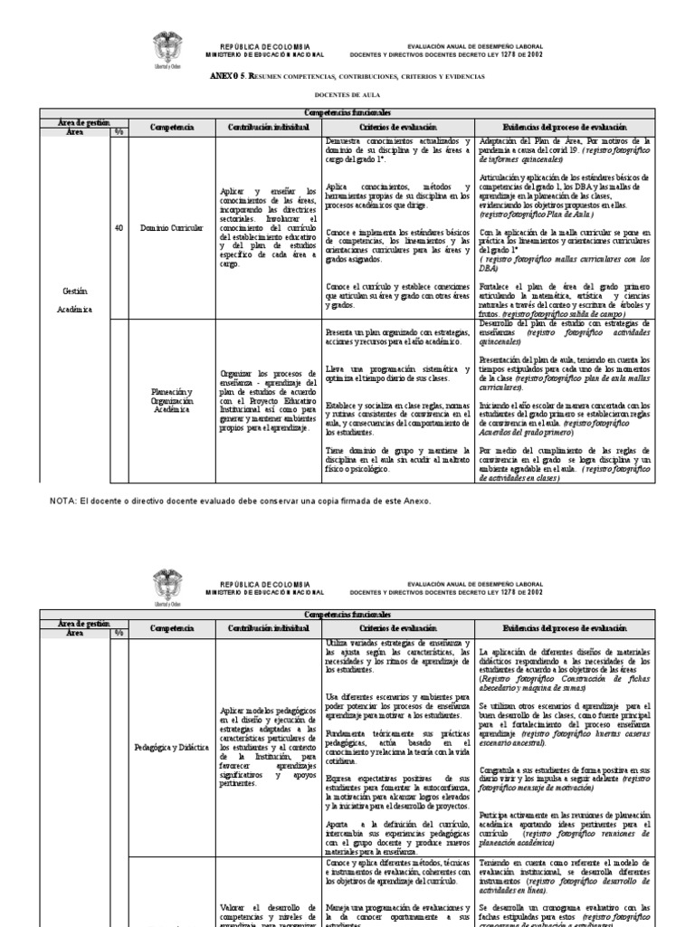 NOTA: El docente o directivo docente evaluado debe conservar una copia firmada de este Anexo.