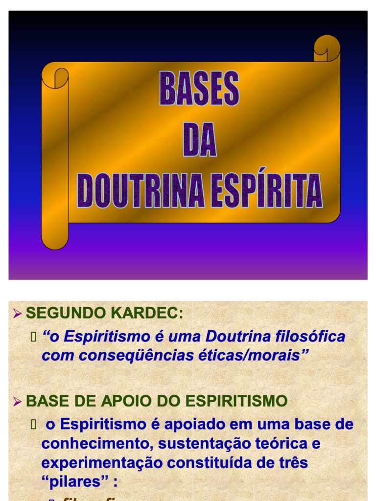 a separao dos pilares da Doutrina Esprita em trs segmentos mais didtididtica do que prtica, pois seus fundamentos se interpenetram e interagem; da mesma forma, atribuir contedos especficos s obras iniciais de Kardec complicado, pois o Livro dos Espritos contm toda a fundamentao necessria, que desdobrada e detalhada nas demais obras. Da mesma forma o contedo dos Livros no estanque e se interpenetram, pois formam um conjunto, um corpo.