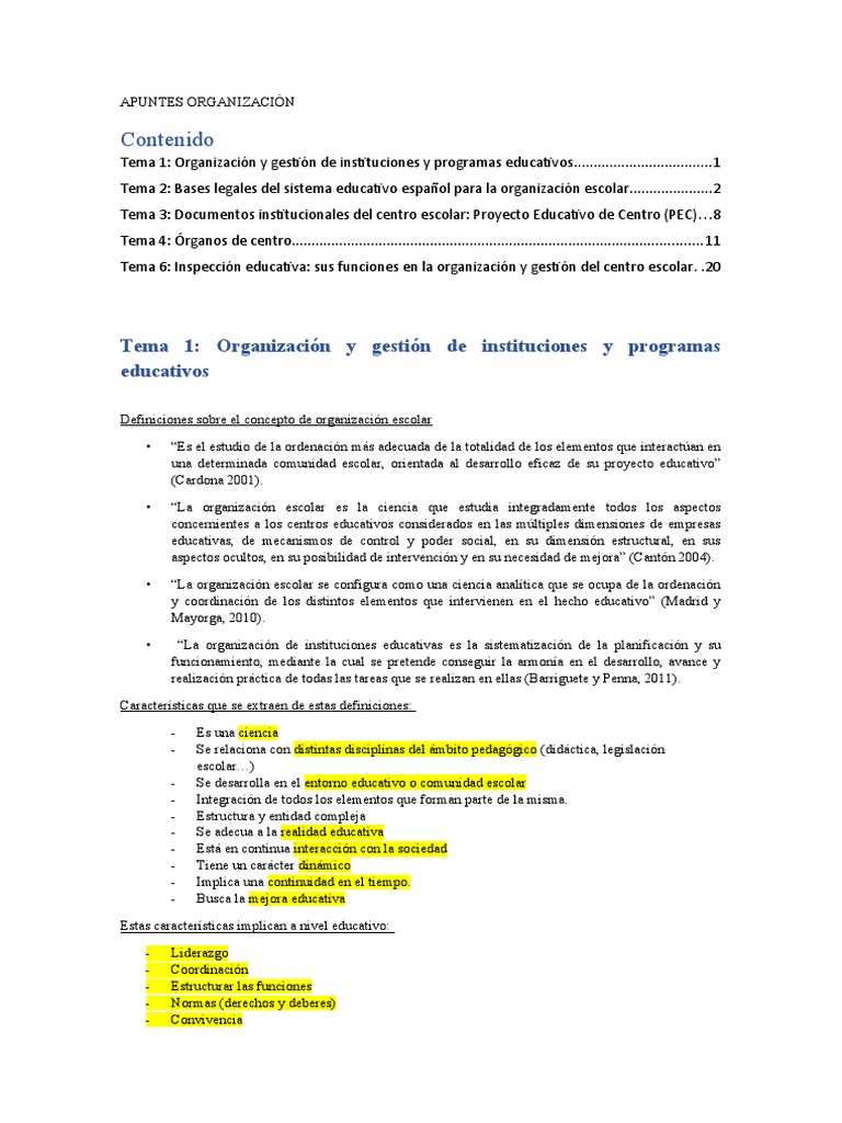 Tema 1: Organización y gestión de instituciones y programas educativos...................................1