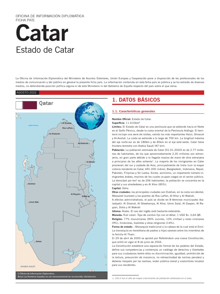 Las relaciones diplomáticas entre Catar y España se establecieron el 22 (25% menos que en 2019).