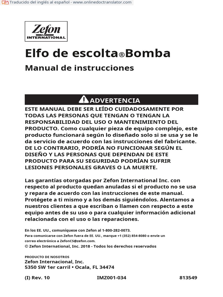 Para comunicarse con Zefon fuera de EE. UU., marque +1 (352) 854-8080 o envíe un