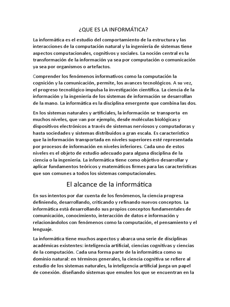 ciencia o la ingeniería. La informática tiene como objetivo desarrollar y