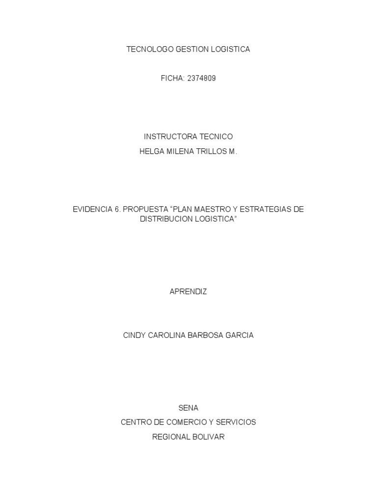 Evidencia 6: Propuesta “Plan maestro y estrategias de distribución logística”