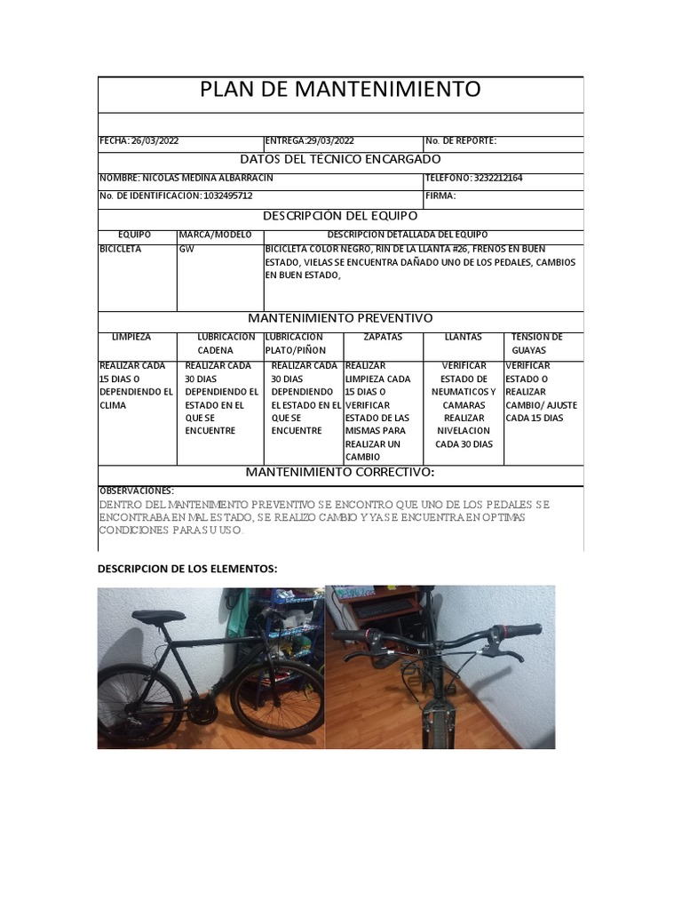 REALIZAR UN ADECUADO MANTENIMIENTO A LA BICICLETA ES IMPORTANTE RECORDAR QUE
