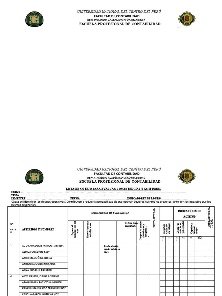 LISTA DE COTEJO PARA EVALUAR COMPETENCIAS Y ACTITUDES