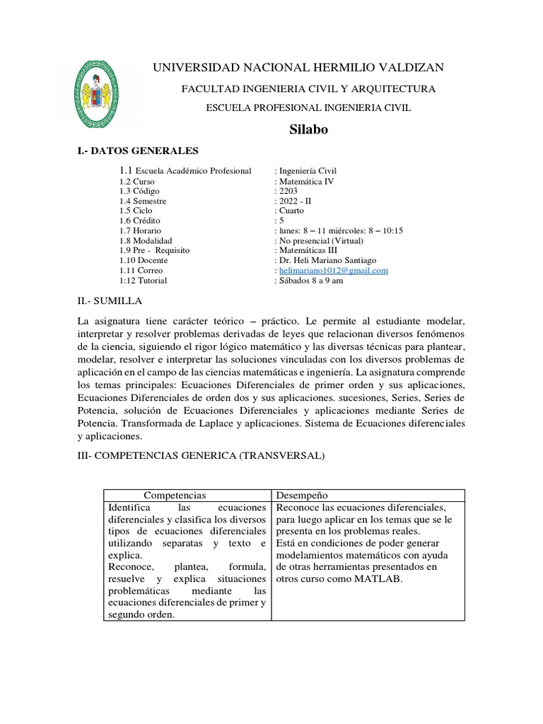 1.2 Curso : Matemática IV