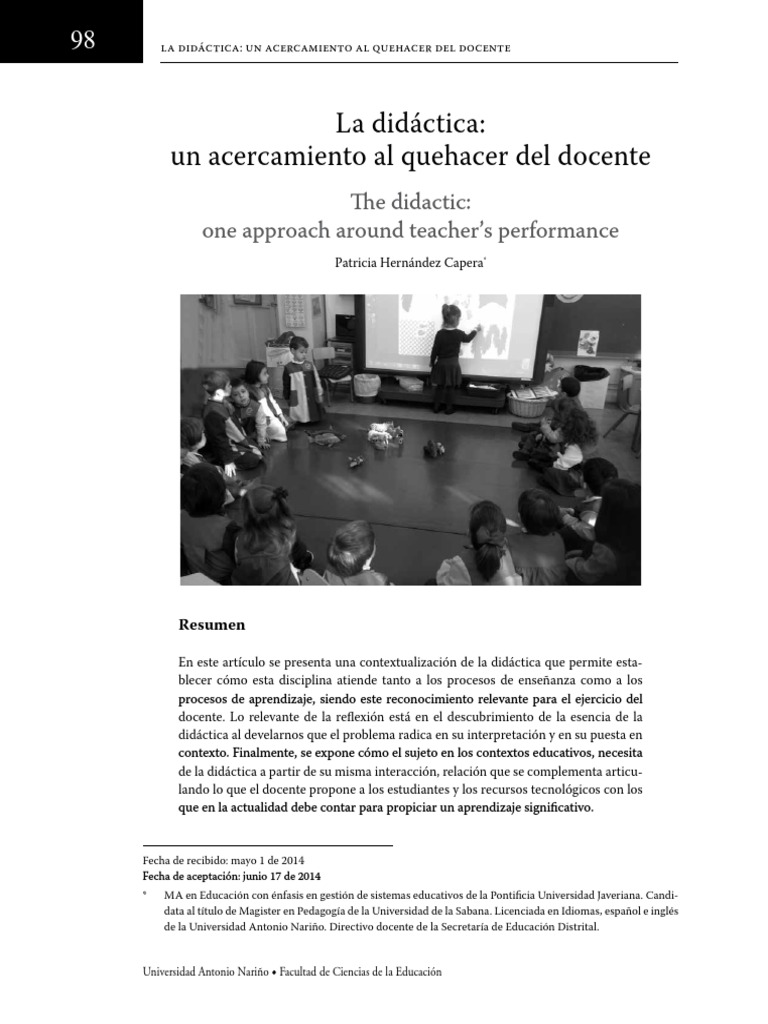 Palabras clave: didáctica, docente, contexto educativo, estudiante, enseñanza,
