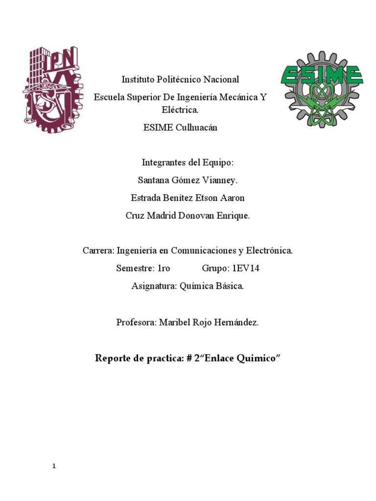 Es por ello que en esta práctica: “Enlace químico”, observaremos que algunos