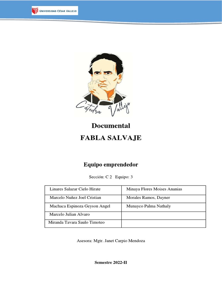 Realizar este documental con respecto a “Fabla Salvaje” César Vallejo para su