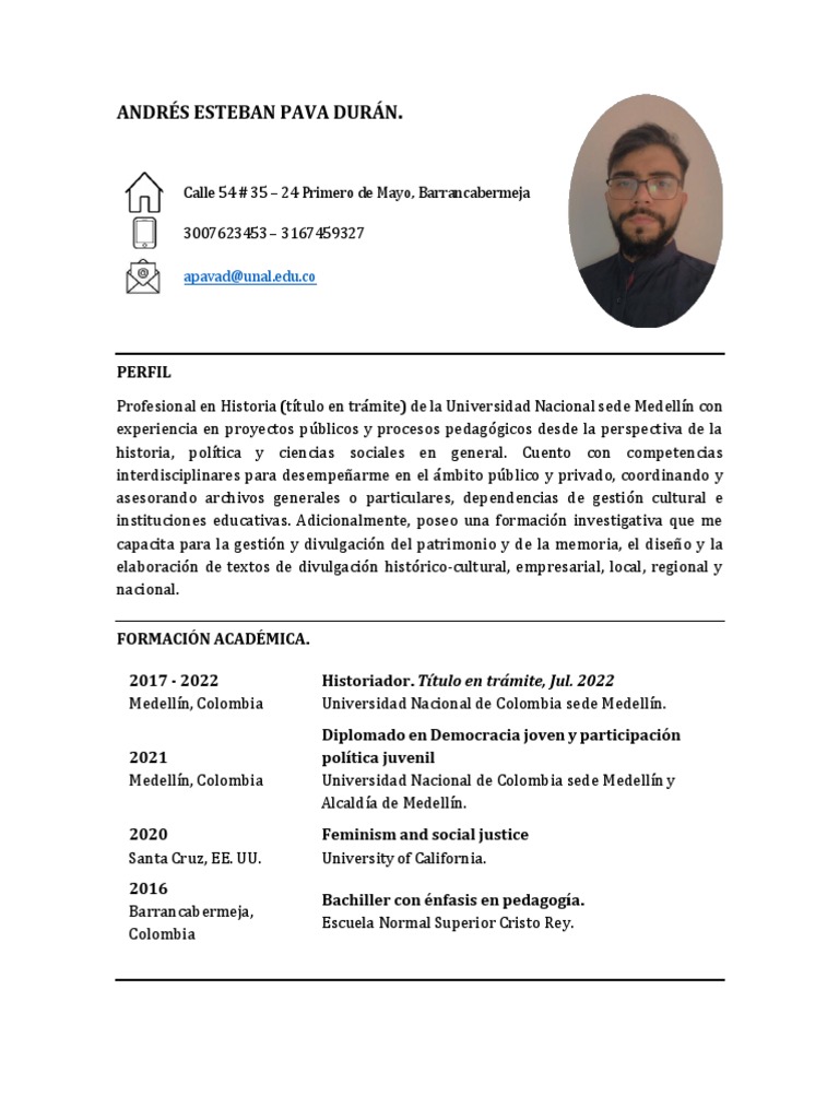 Profesional en Historia (título en trámite) de la Universidad Nacional sede Medellín con