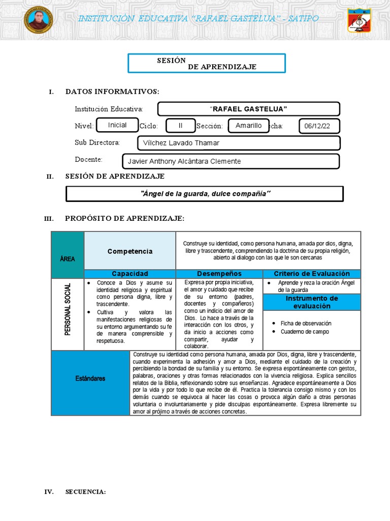 Nivel: Inicial Ciclo: II Sección: Amarillo Fecha: 06/12/22