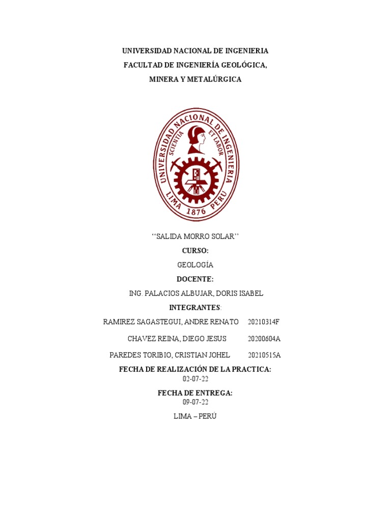 campo realizada en el morro solar. En este informe se estudió distintas muestra de cada