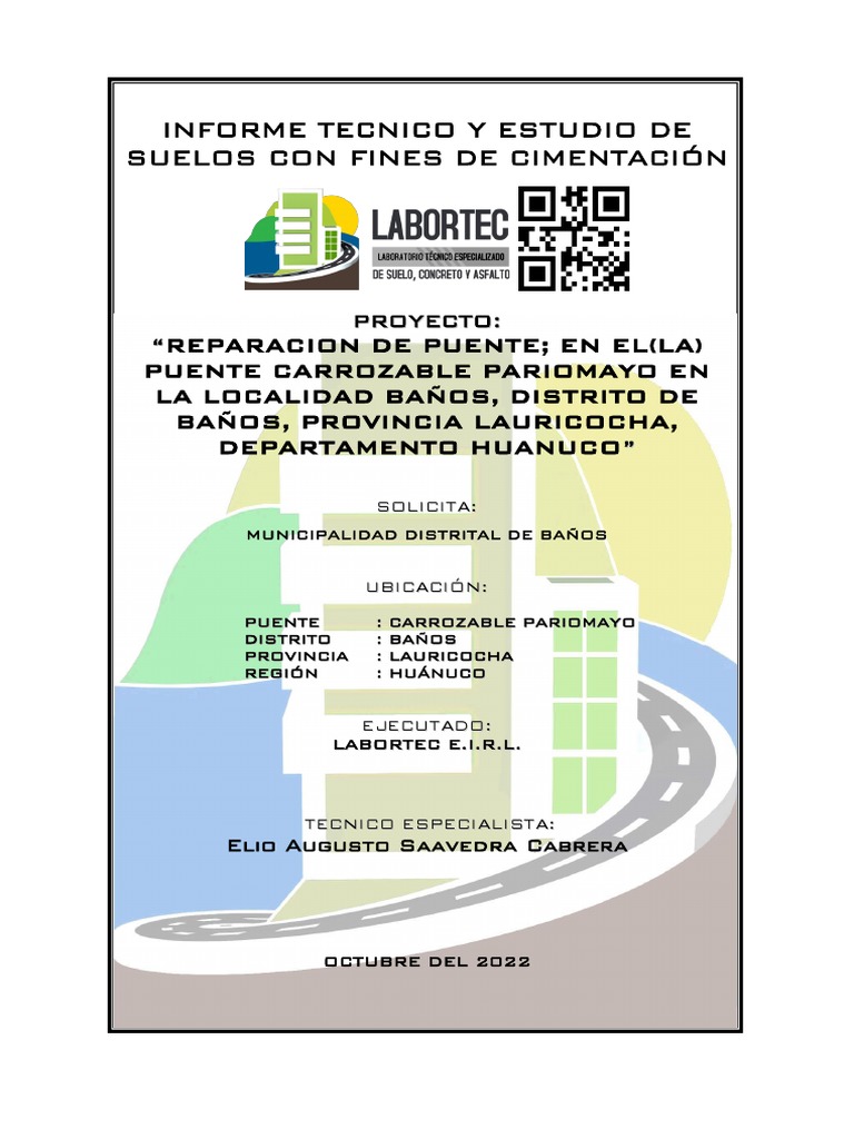 El presente informe de Estudio de Suelos, corresponde al Proyecto “REPARACION