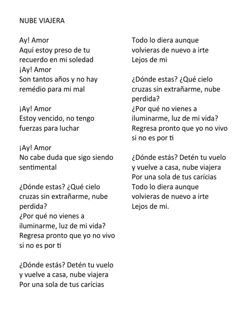 cruzas sin extrañarme, nube volvieras de nuevo a irte