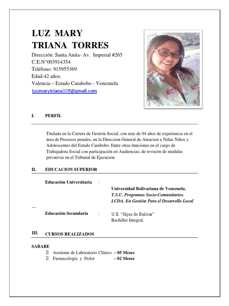 Adolescentes del Estado Carabobo. Entre otras funciones en el cargo de