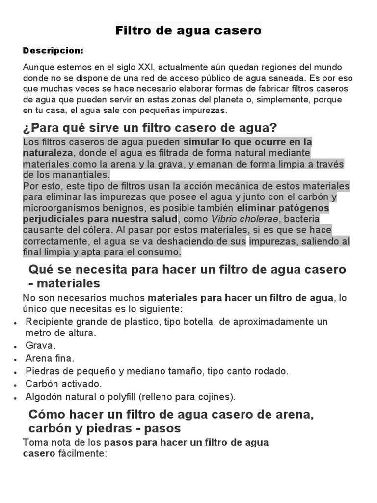 No son necesarios muchos materiales para hacer un filtro de agua, lo