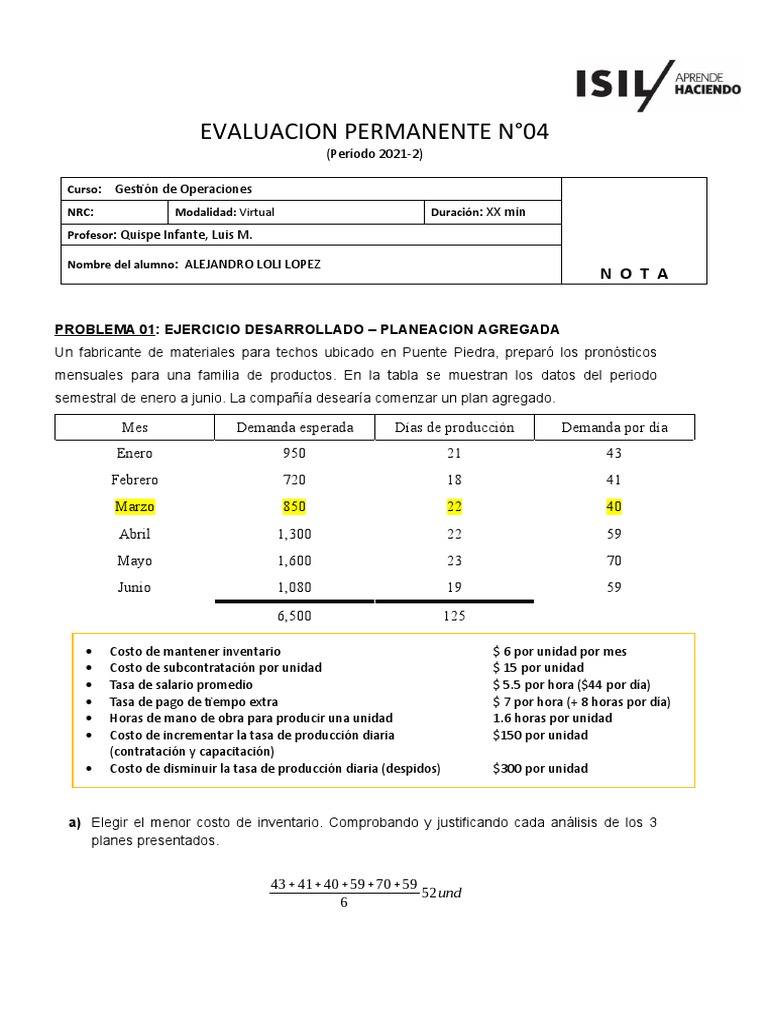 PROBLEMA 01: EJERCICIO DESARROLLADO – PLANEACION AGREGADA