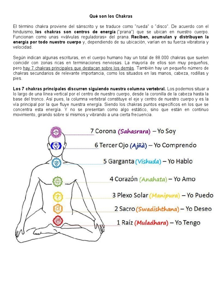 propósito espiritual conectados con dicha zona. También se asocia cada uno de estos chakras