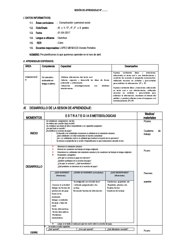 III. DESARROLLO DE LA SESION DE APRENDIZAJE: