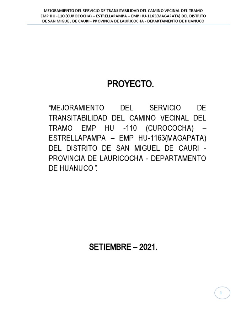 proyecto “MEJORAMIENTO DEL SERVICIO DE TRANSITABILIDAD DEL CAMINO