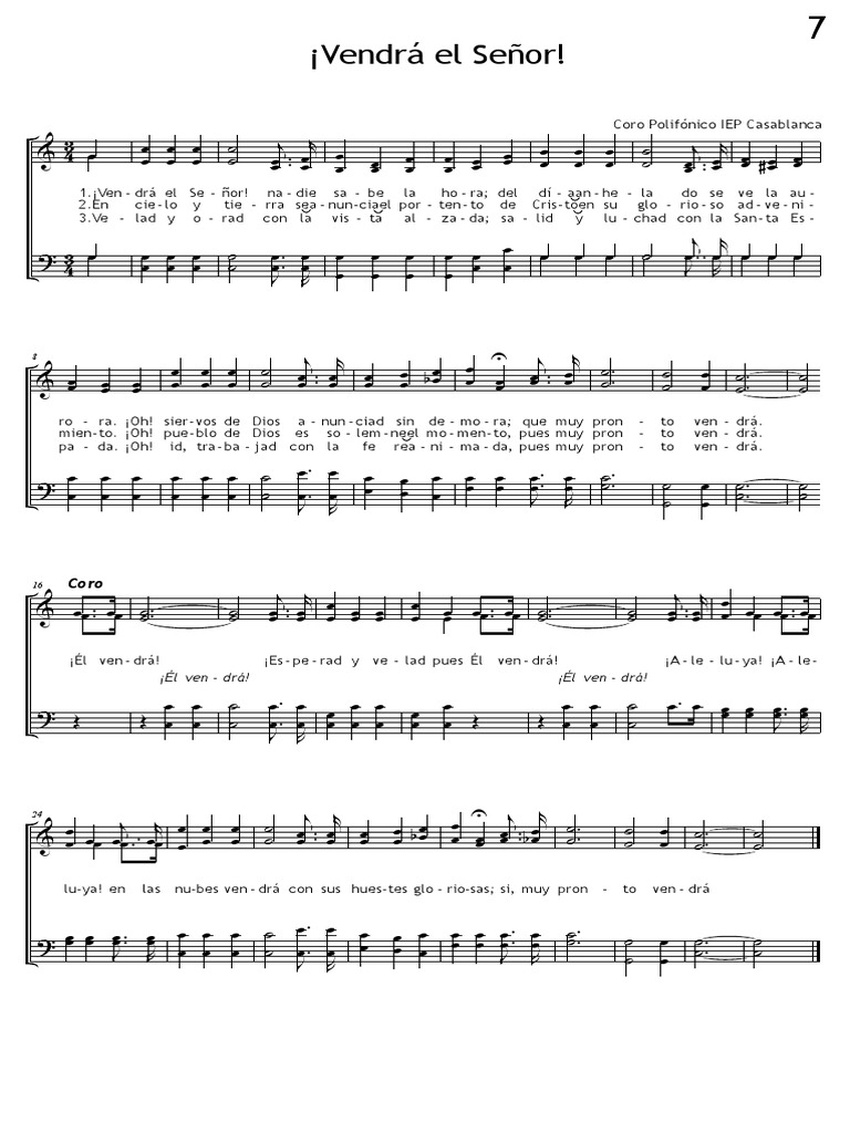 1.¡Ven - drá el Se - ñor! na - die sa - be la ho - ra; del dí - aan - he - la do se ve la au -