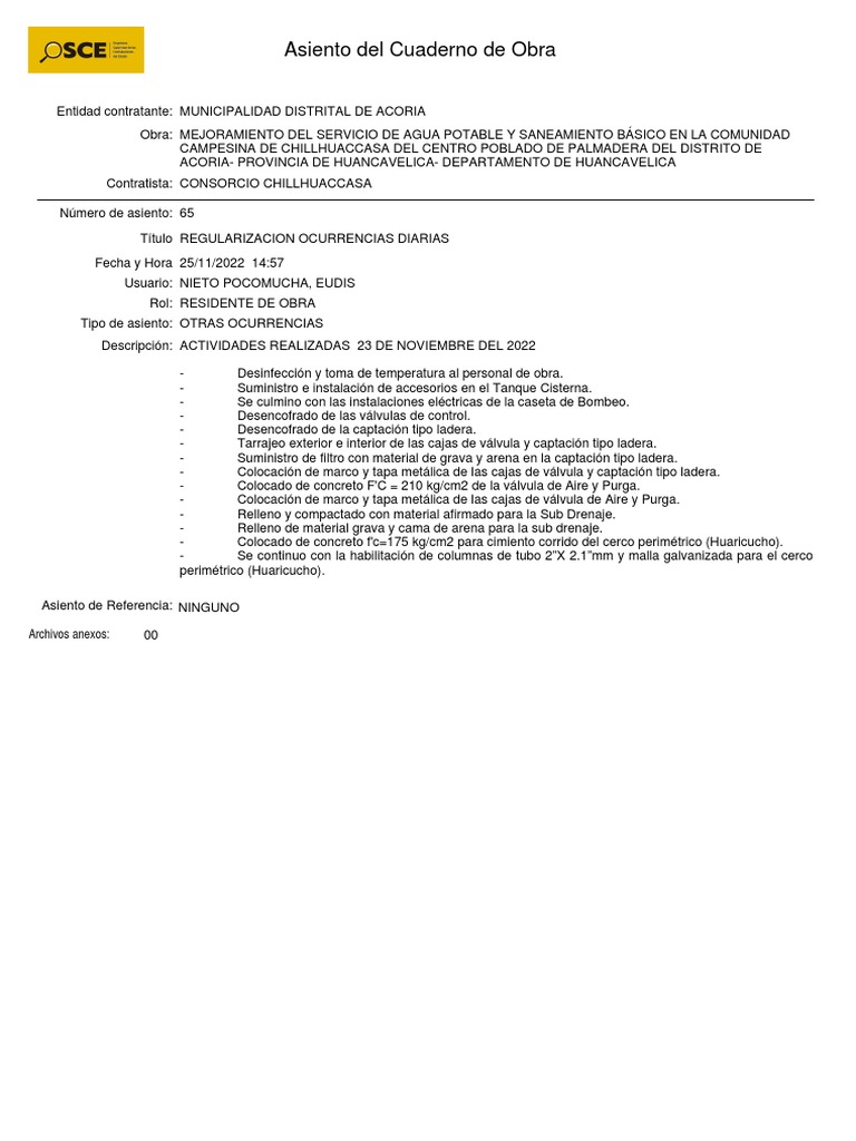 Entidad contratante: MUNICIPALIDAD DISTRITAL DE ACORIA