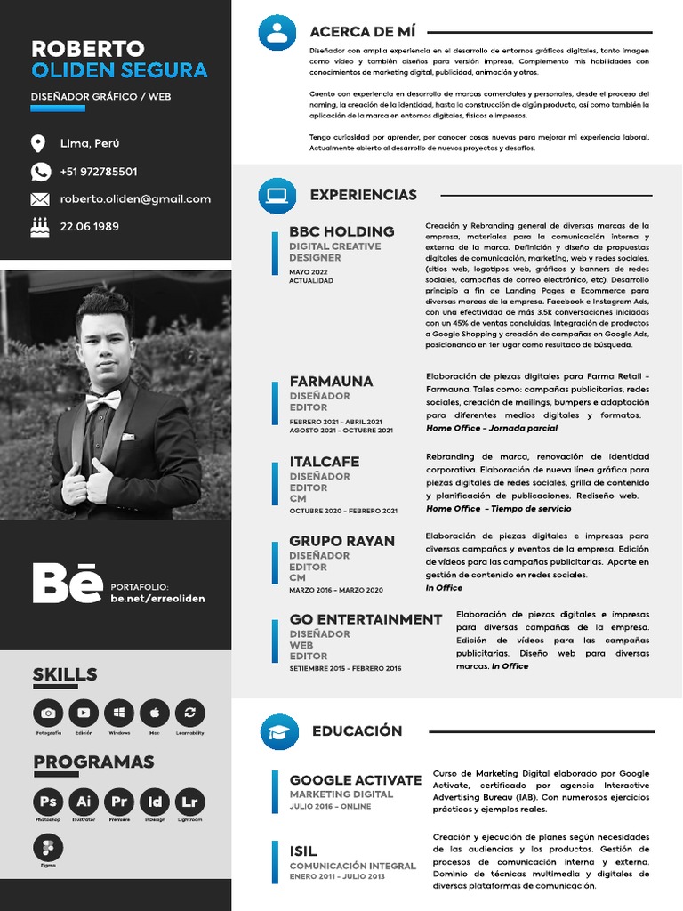 roberto.oliden@gmail.com EXPERIENCIAS