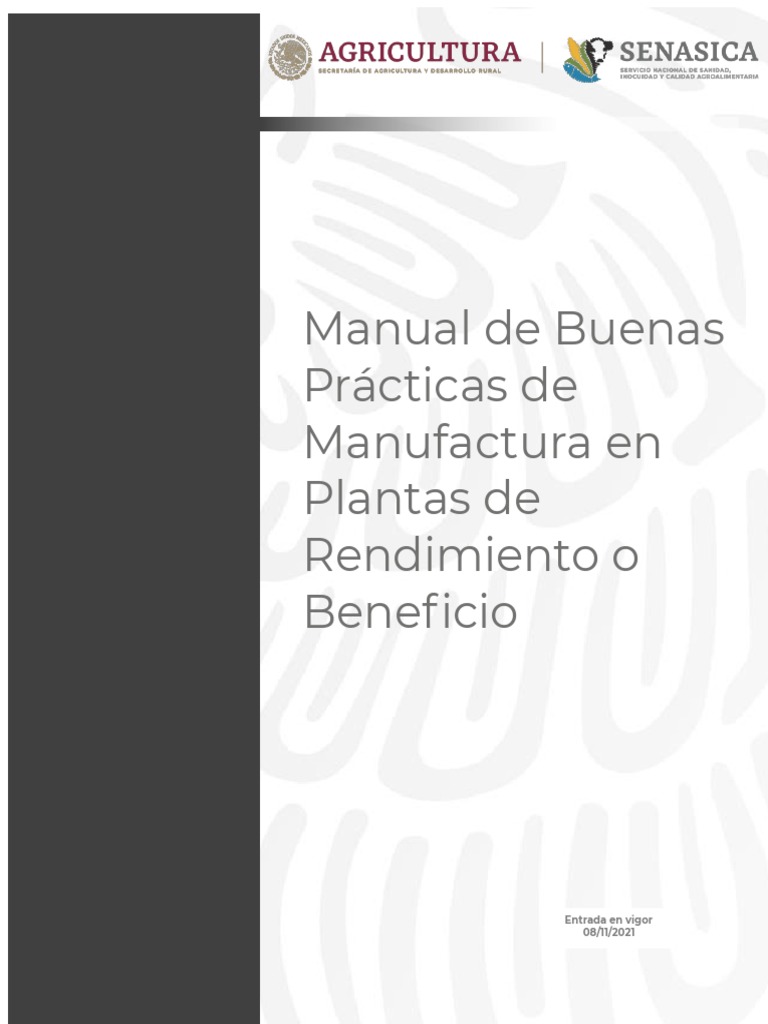 Manual de Buenas Prácticas de Manufactura en Plantas de Rendimiento o