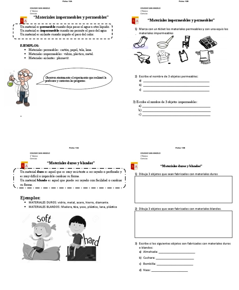 Un material es impermeable cuando no permite el paso del agua 1) Marca con un ticket los materiales permeables y con una equis los