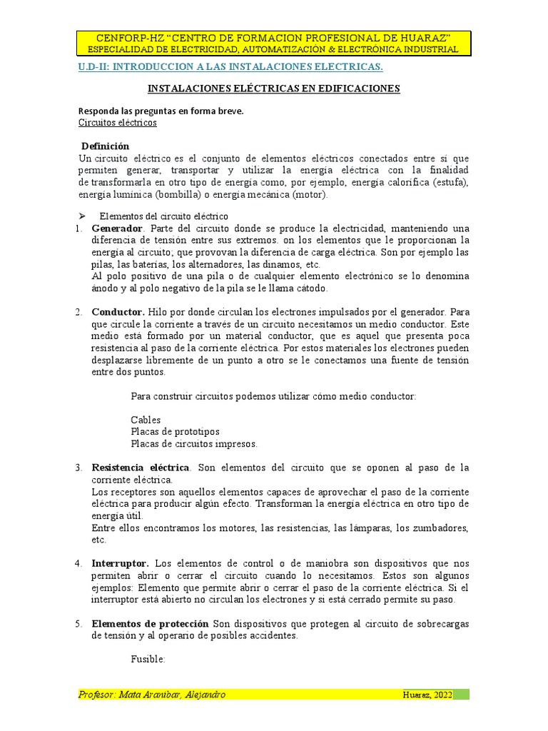 U.D-II: INTRODUCCION A LAS INSTALACIONES ELECTRICAS.