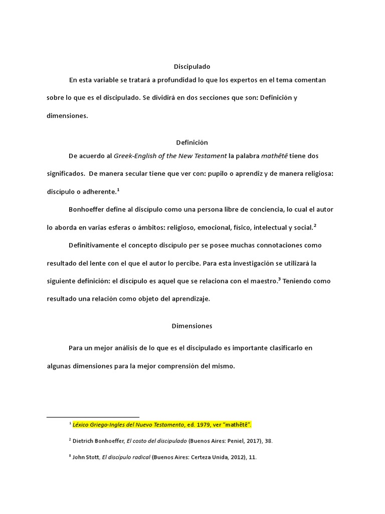 sobre lo que es el discipulado. Se dividirá en dos secciones que son: Definición y