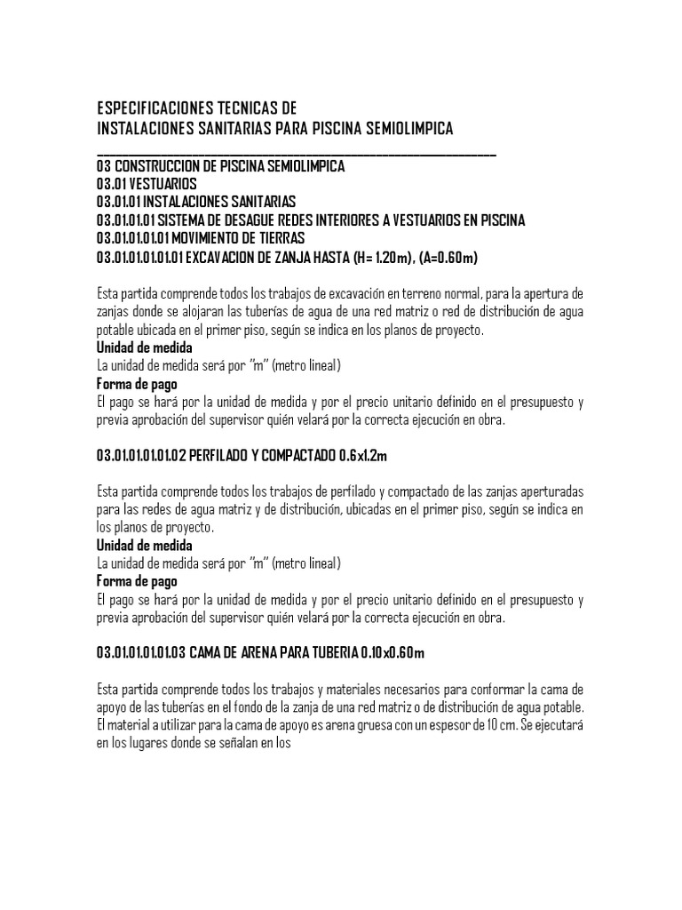 03.01.01.01 SISTEMA DE DESAGUE REDES INTERIORES A VESTUARIOS EN PISCINA